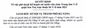 Thông báo về việc xét tuyển viên chức của Trung tâm Y tế quận Sơn Trà năm 2021