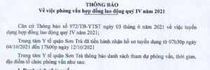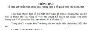 Thông báo về việc xét tuyển viên chức của Trung tâm Y tế quận Sơn Trà năm 2021